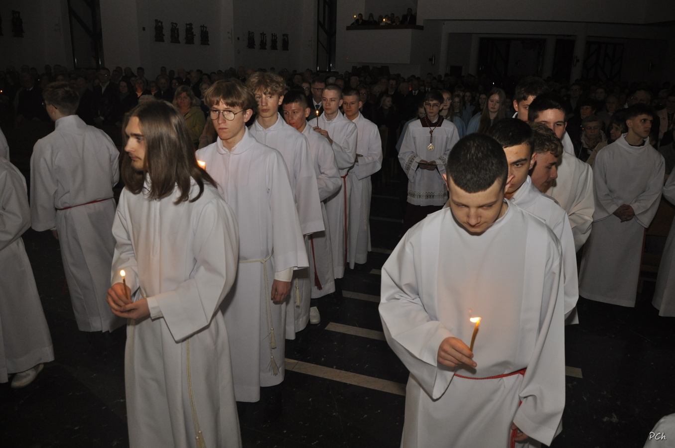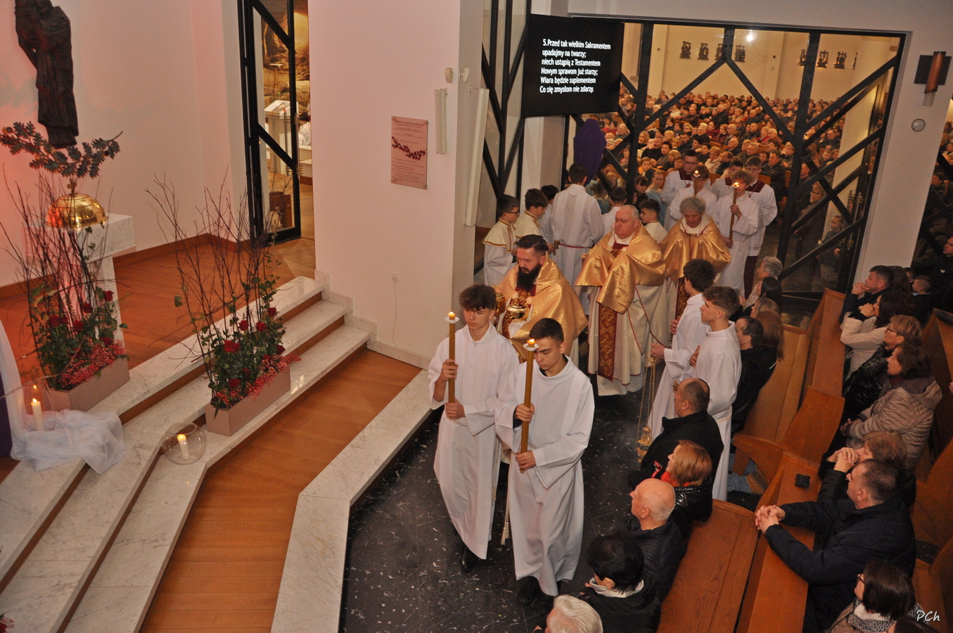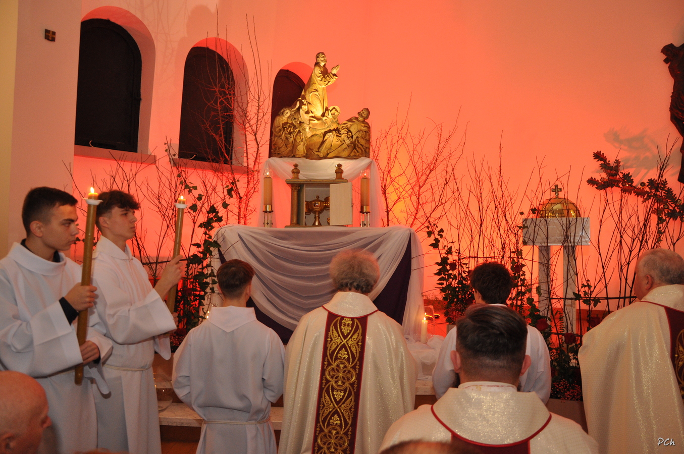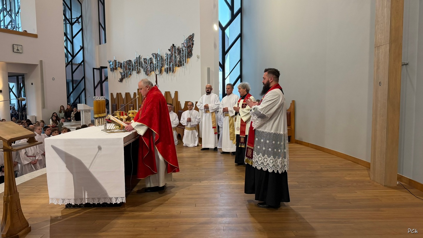 Obchody rozpoczęły się Mszą Wieczerzy Pańskiej. Uroczystość rozpoczęła się od złożenia życzeń naszym Kapłanom z okazji ich święta. W czasie liturgii wspomina się Ostatnią Wieczerzę, podczas której Jezus ustanowił Sakramenty Eucharystii i Kapłaństwa. Po Mszy Najświętszy Sakrament został przeniesiony do ciemnicy przygotowanej w kaplicy chrzcielnej naszej świątyni, gdzie wierni trwali na adoracji.