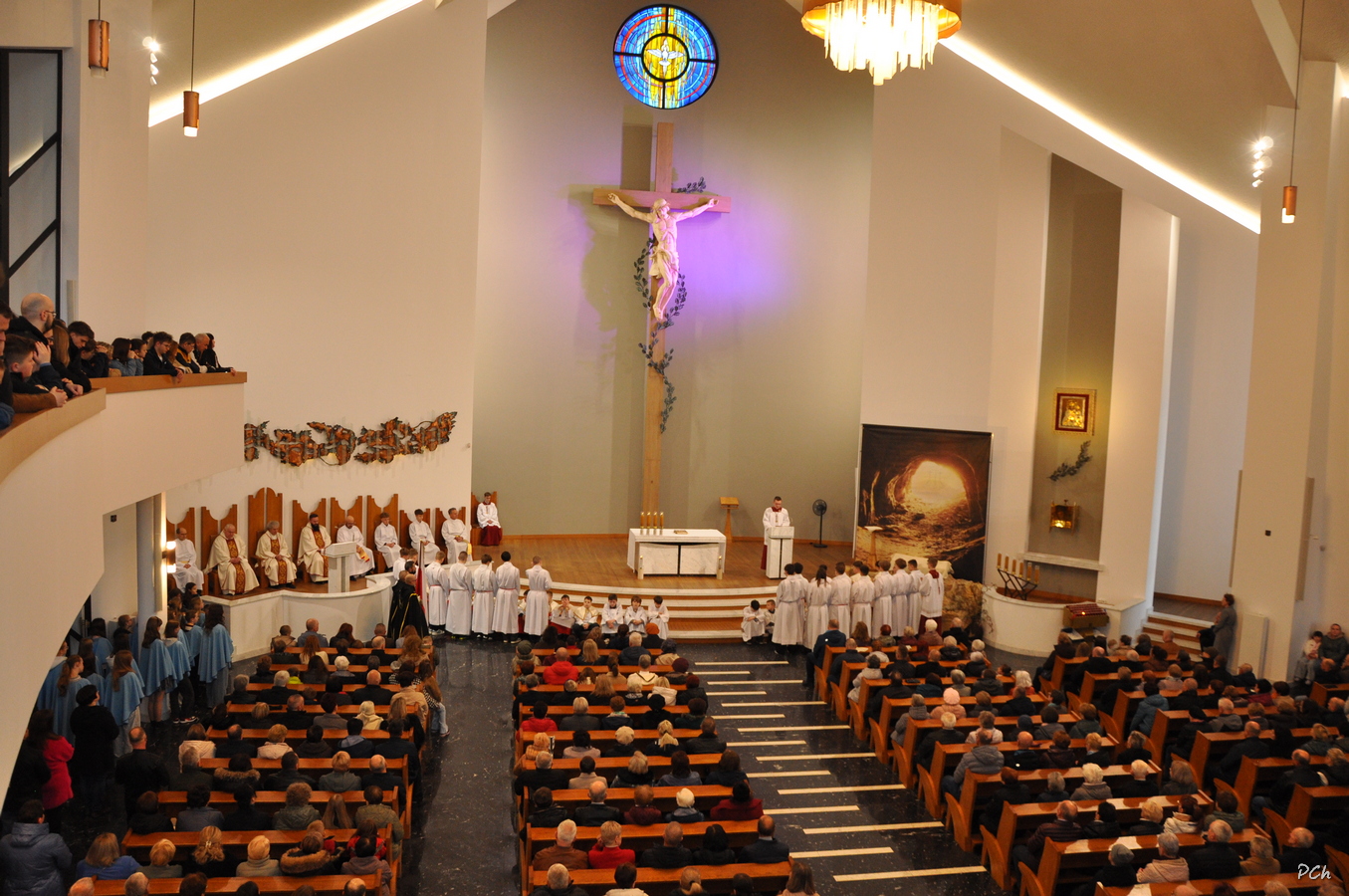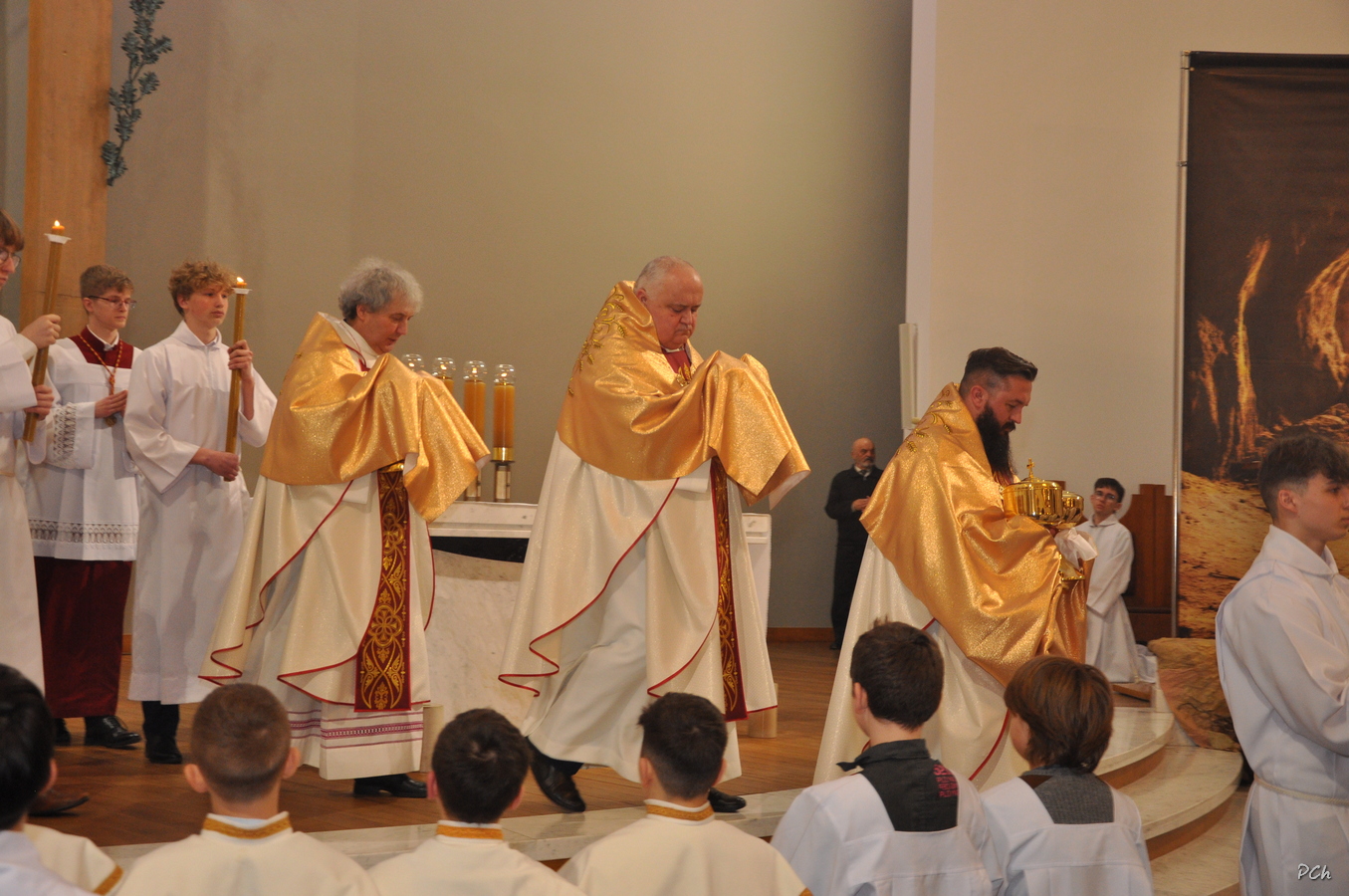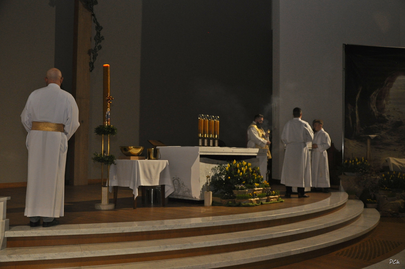 Obchody rozpoczęły się Mszą Wieczerzy Pańskiej. Uroczystość rozpoczęła się od złożenia życzeń naszym Kapłanom z okazji ich święta. W czasie liturgii wspomina się Ostatnią Wieczerzę, podczas której Jezus ustanowił Sakramenty Eucharystii i Kapłaństwa. Po Mszy Najświętszy Sakrament został przeniesiony do ciemnicy przygotowanej w kaplicy chrzcielnej naszej świątyni, gdzie wierni trwali na adoracji.